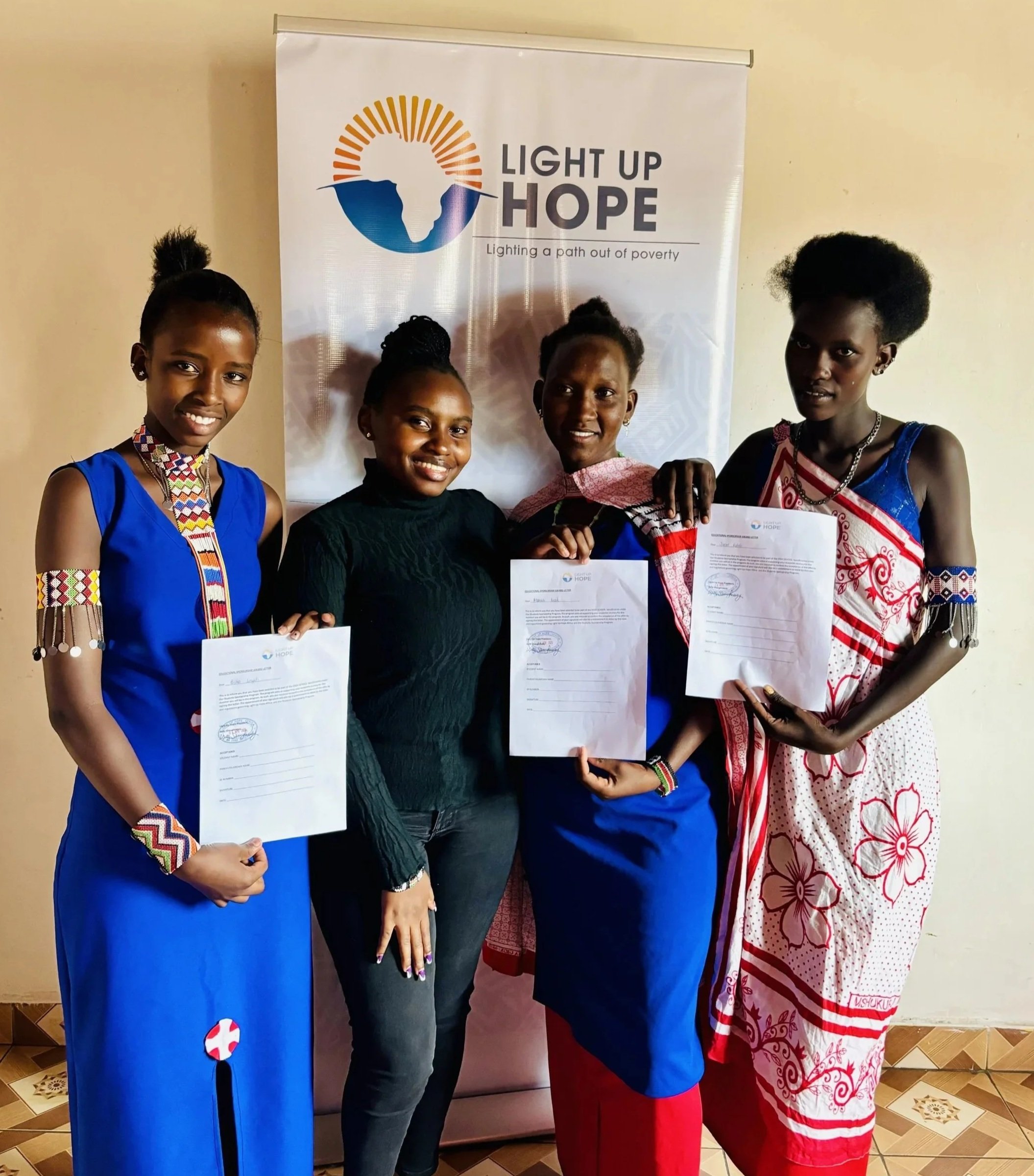 Gracious Aganda, second from the right, stands with Light Up Hope Scholars who just received their scholarship letters.